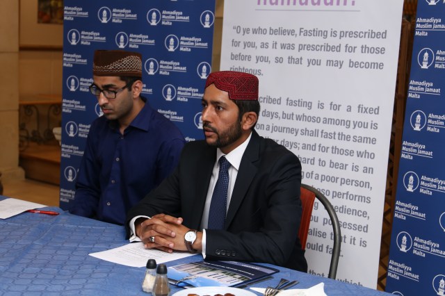 Imam Laiq Ahmed Atif, President Ahmadiyya Muslim Jamaat Malta explained the concept of fasting in Islam and quoted verses from the Holy Quran and Sayings of the Holy Prophet Muhammad, peace be on him.