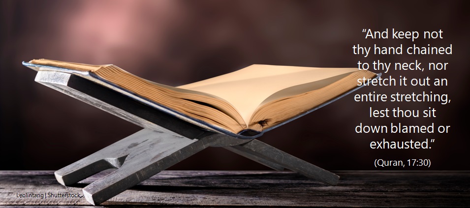 Iżżommx idek marbuta m’għonqok, jew testendiha kemm tista’, għaliex tista’ tispiċċa akkużat jew mifluġ. (Il-Koran, 17:30)