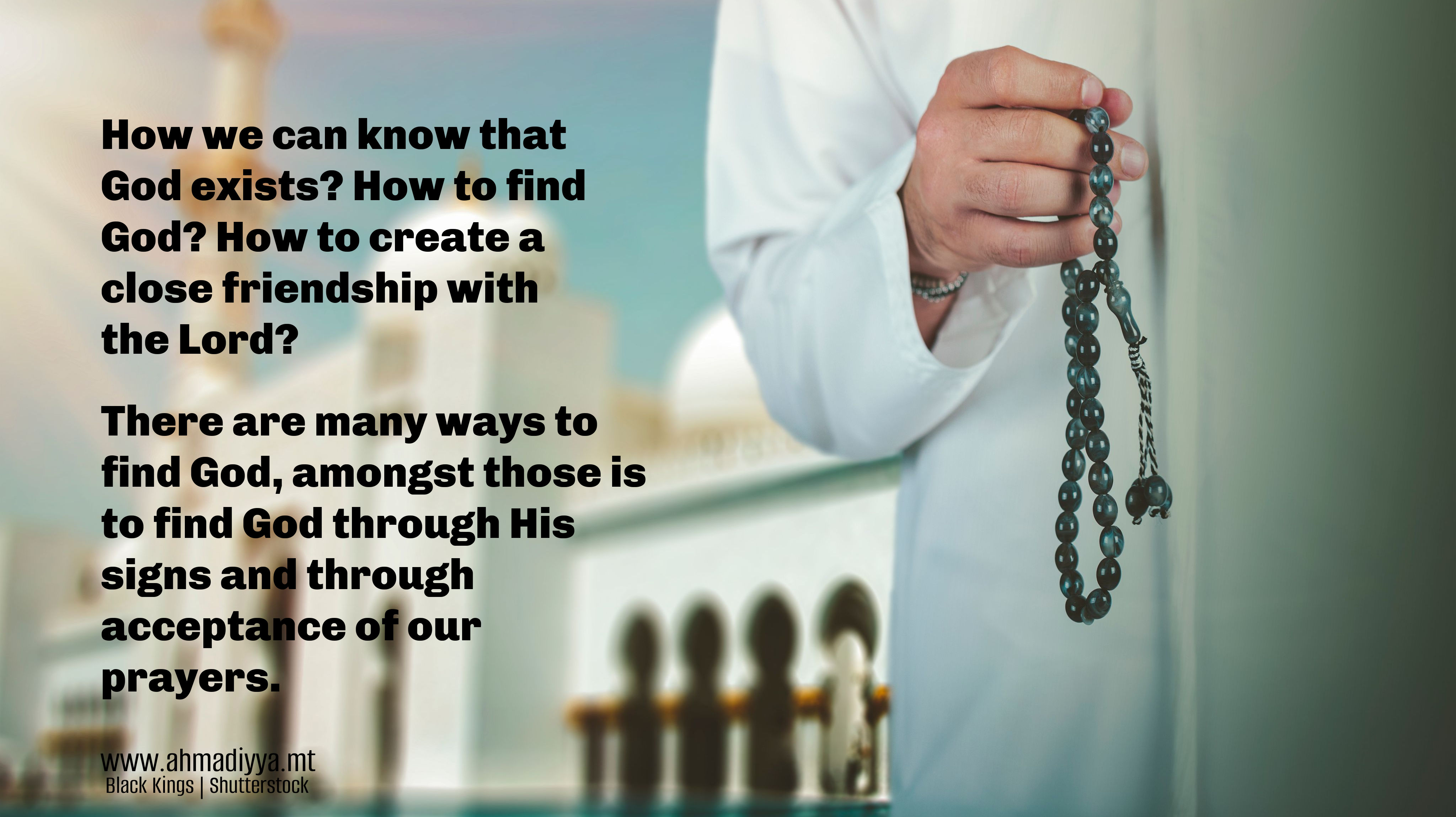 Secondly, there are many ways to find God, amongst those is to find God through His signs and through acceptance of our prayers. There is also His knowledge which a person obtains through Prophets and thereby saves himself from death and ruin. Also His attribute that He hears the supplications of the restless and fatigued ones.