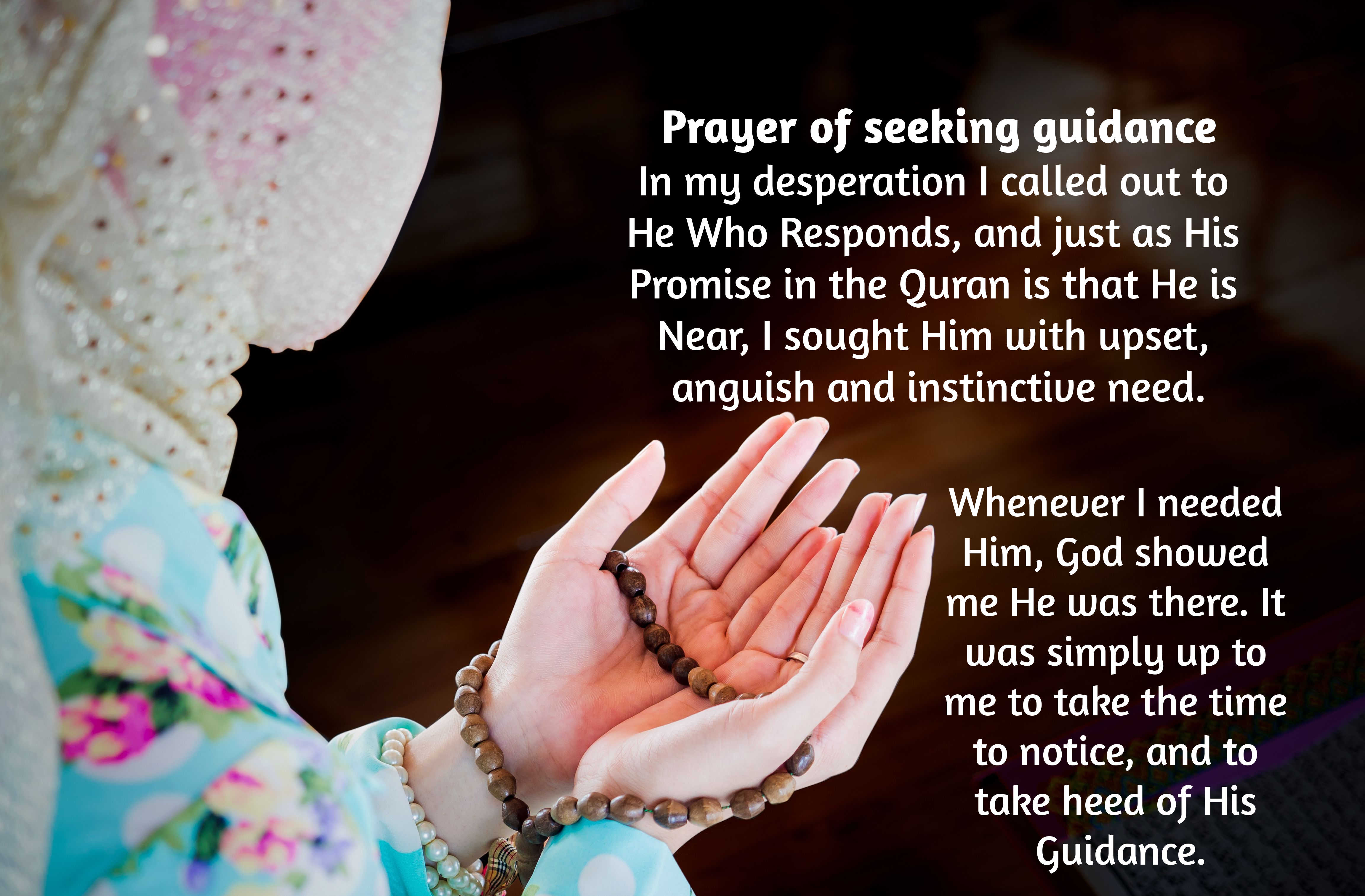 In my desperation I called out to He Who Responds, and just as His Promise in the Quran is that He is Near, I sought Him with upset, anguish and instinctive need. My mother said that I perform a specific type of formal prayer called Salatul Istikhara – one for seeking guidance when making a decision.