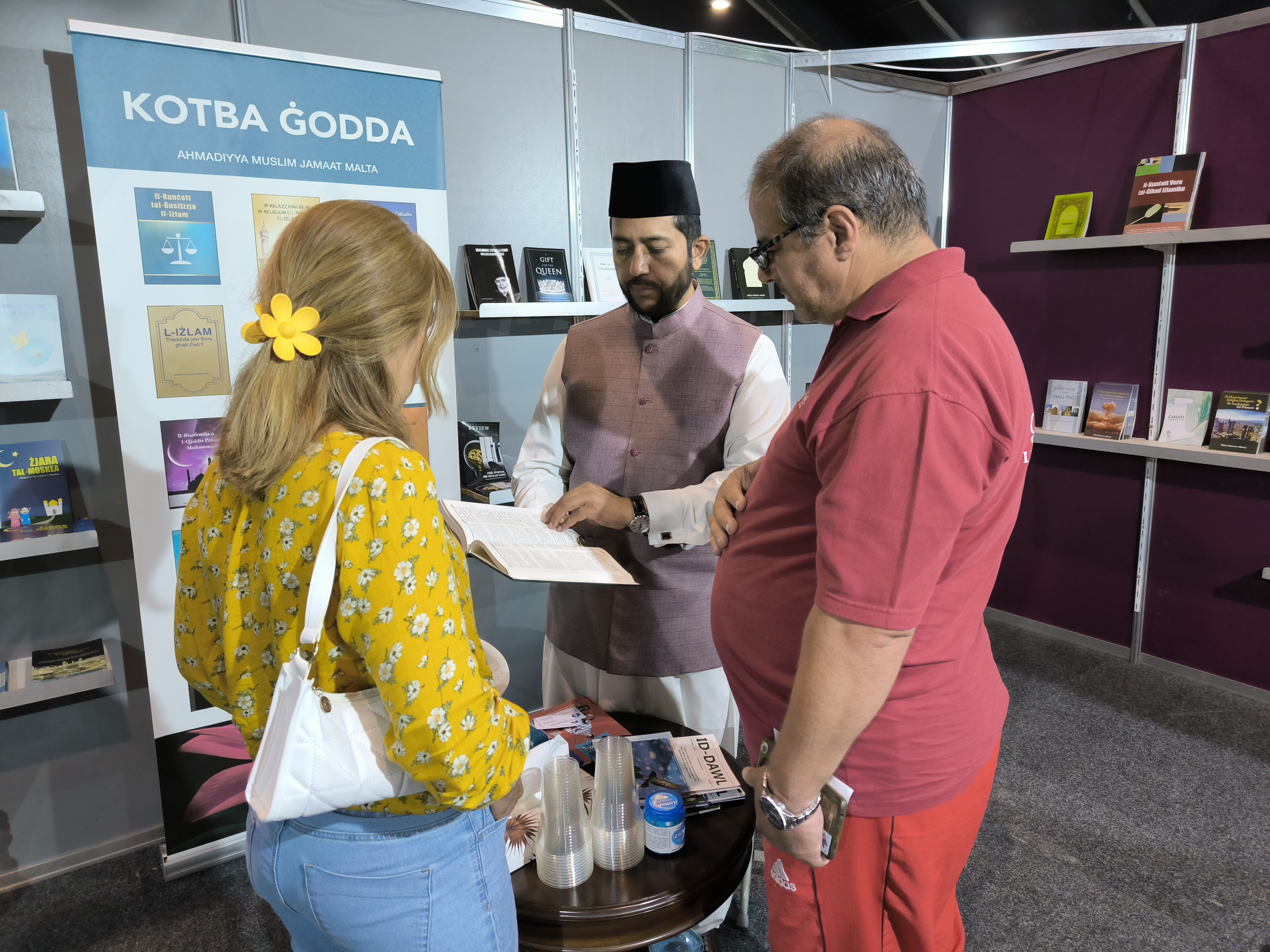 With the grace and blessings of Almighty Allah the Ahmadiyya Muslim Jamaat Malta once again was able to participate in this annual national event. Many visitors visited our Book Stand and took different books and particularly the Holy Quran with English translation. Many copies of the book ‘World Crisis and the Pathway to Peace’ and the monthly Maltese magazine ‘ID-DAWL’ were also given out.