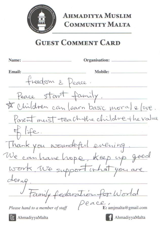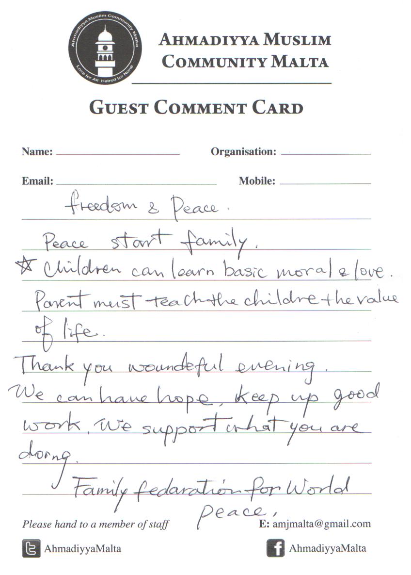 www.ahmadiyya.mt amjmalta@gmail.com – M:79 655 255 Love For All, Hatred For None