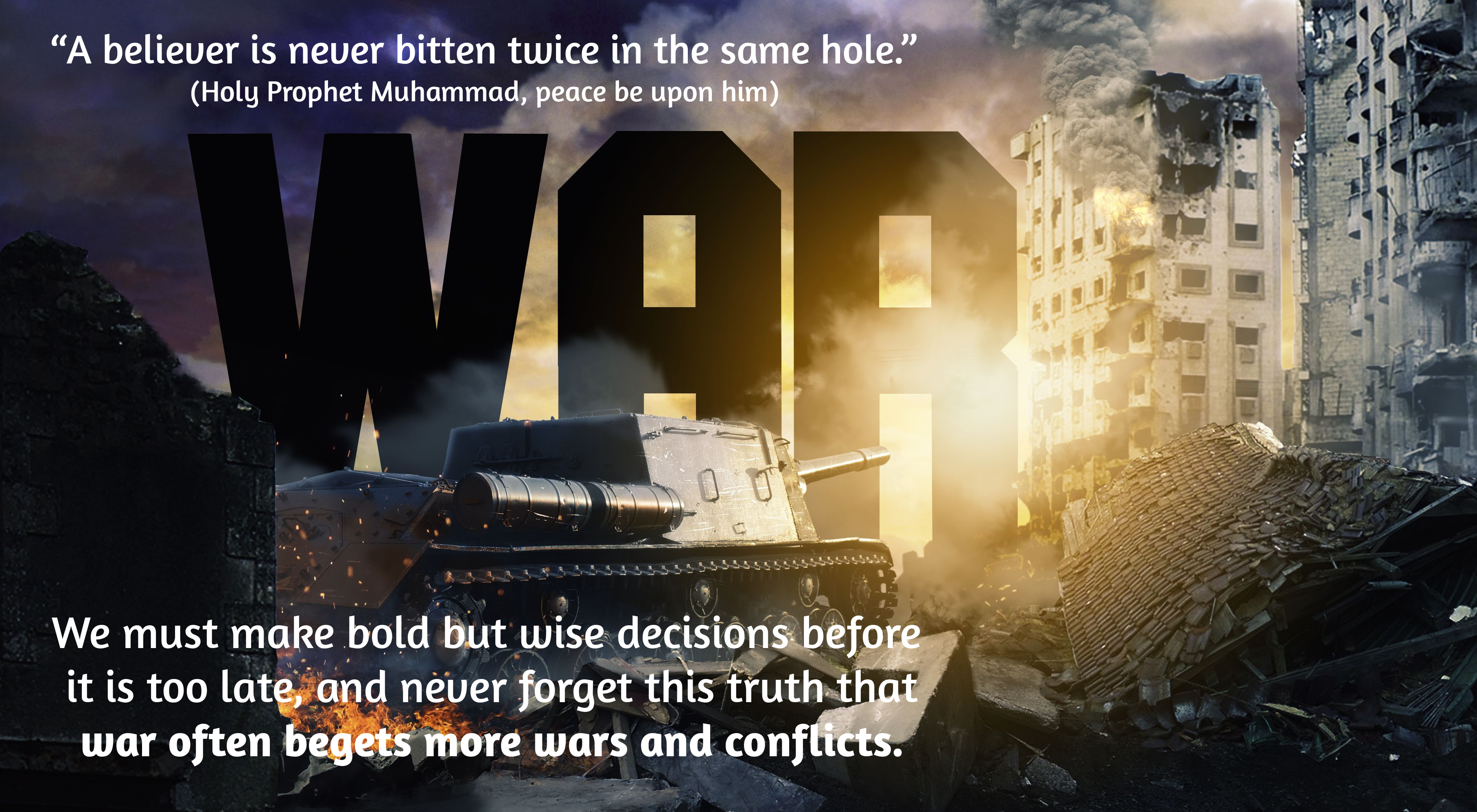 Sfortunatament, il-poteri ewlenin, filwaqt li jesprimu simpatija, ma jridux jamministraw il-ġustizzja u mhumiex serji dwar din il-kwistjoni. Huma jemmnu li l-gwerra se tibqa’ konfinata għal dawk iż-żoni, iżda mhumiex konxji. Anke l-għorrief fosthom bdew jgħidu li l-gwerra mhux se tkun limitata għal dawk ir-reġjuni iżda se tinfirex aktar u tilħaq pajjiżi tagħhom stess. Il-pajjiżi kbar m’għandhomx jinsew li meta l-fjammi tan-nar jinfirxu ma jeħilsu lil ħadd; u ma jagħmlu ebda distinzjoni bejn kbar jew żgħar, u bejn sinjuri jew foqra.
