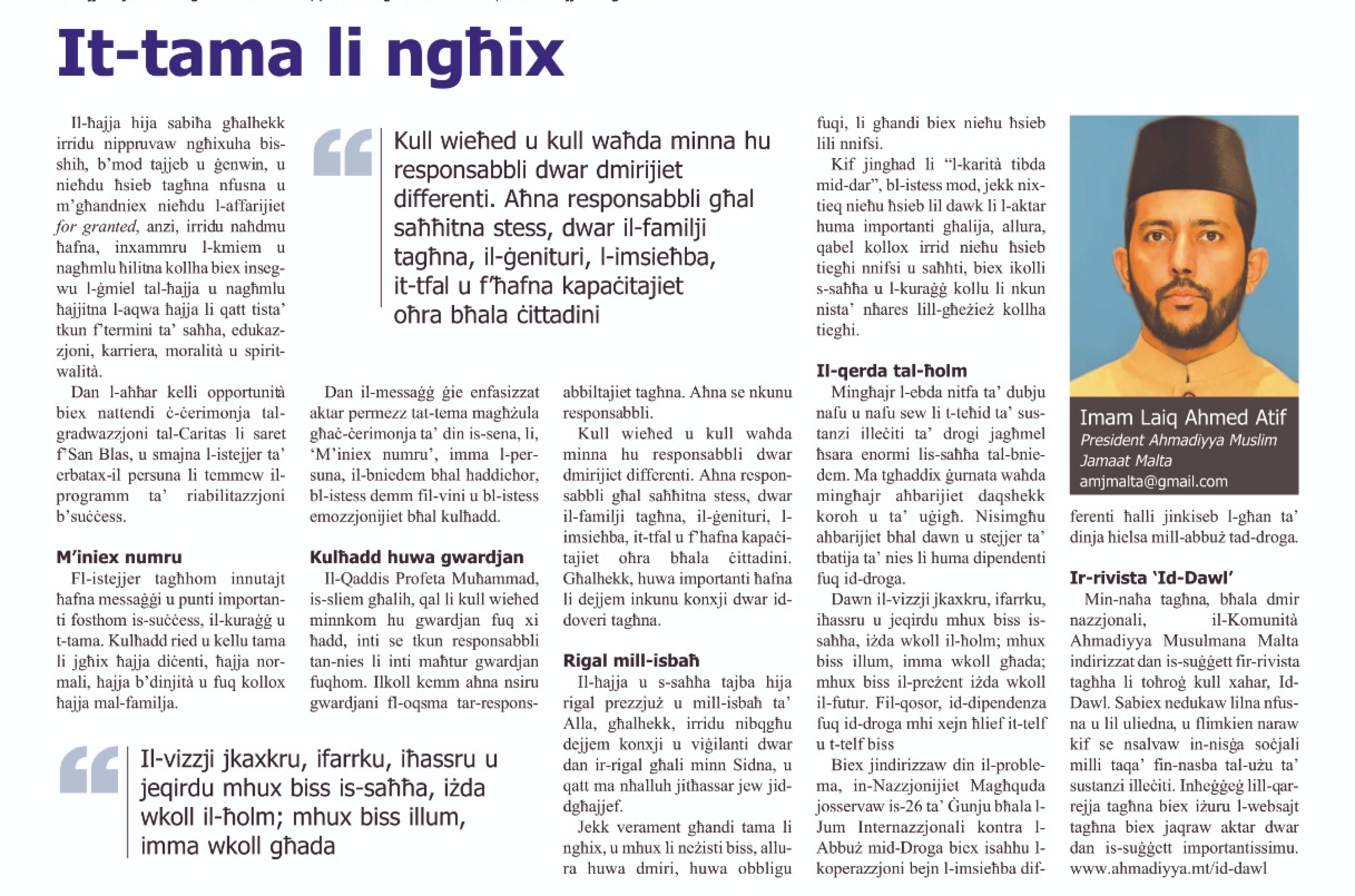 Imam Laiq Ahmed Atif | In-Nazzjon 05.08.2023 | amjmalta@gmail.com