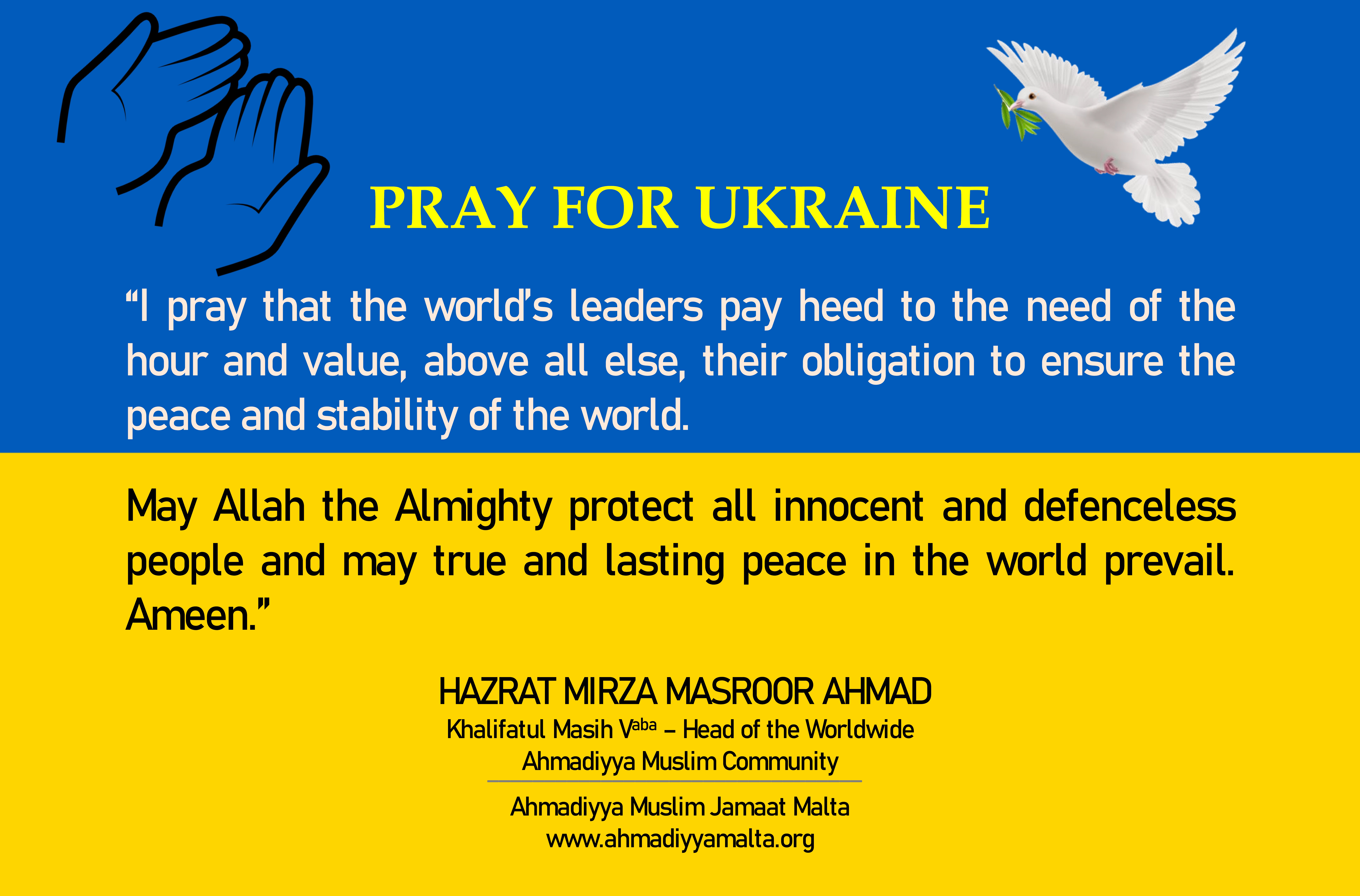 “I pray that the world’s leaders pay heed to the need of the hour and value, above all else, their obligation to ensure the peace and stability of the world. May Allah the Almighty protect all innocent and defenceless people and may true and lasting peace in the world prevail. Ameen.” HAZRAT MIRZA MASROOR AHMAD – Khalifatul Masih Vaba