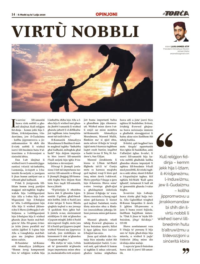 U l-eżempju ta’ Marija, bint Għimran, li ħarset is-safa ta’ ġisimha, u Aħna nfaħna minn Ruħna fiha, u hija emmnet fi Kliem Sidha u fil-Kotba Tiegħu, u kienet mill-obbidjenti.” (Il-Koran – 66:12-13)