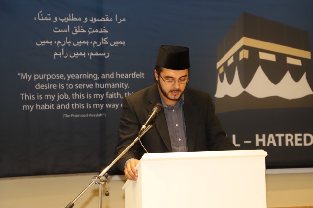 This was followed by a speech by Abdullah Wally Sahib in English about the subject, “Does God Exist?” The next speech was in Urdu by Imam Attaul Wasih Tariq Sahib, Mubaligh in-Charge and vice President Jamaat Italy on, “Salient Aspects of the Companions of the Holy Prophetsa”. Then, Haroon Khan Sahib spoke in English on “Khilafat: A Divine Institution”.