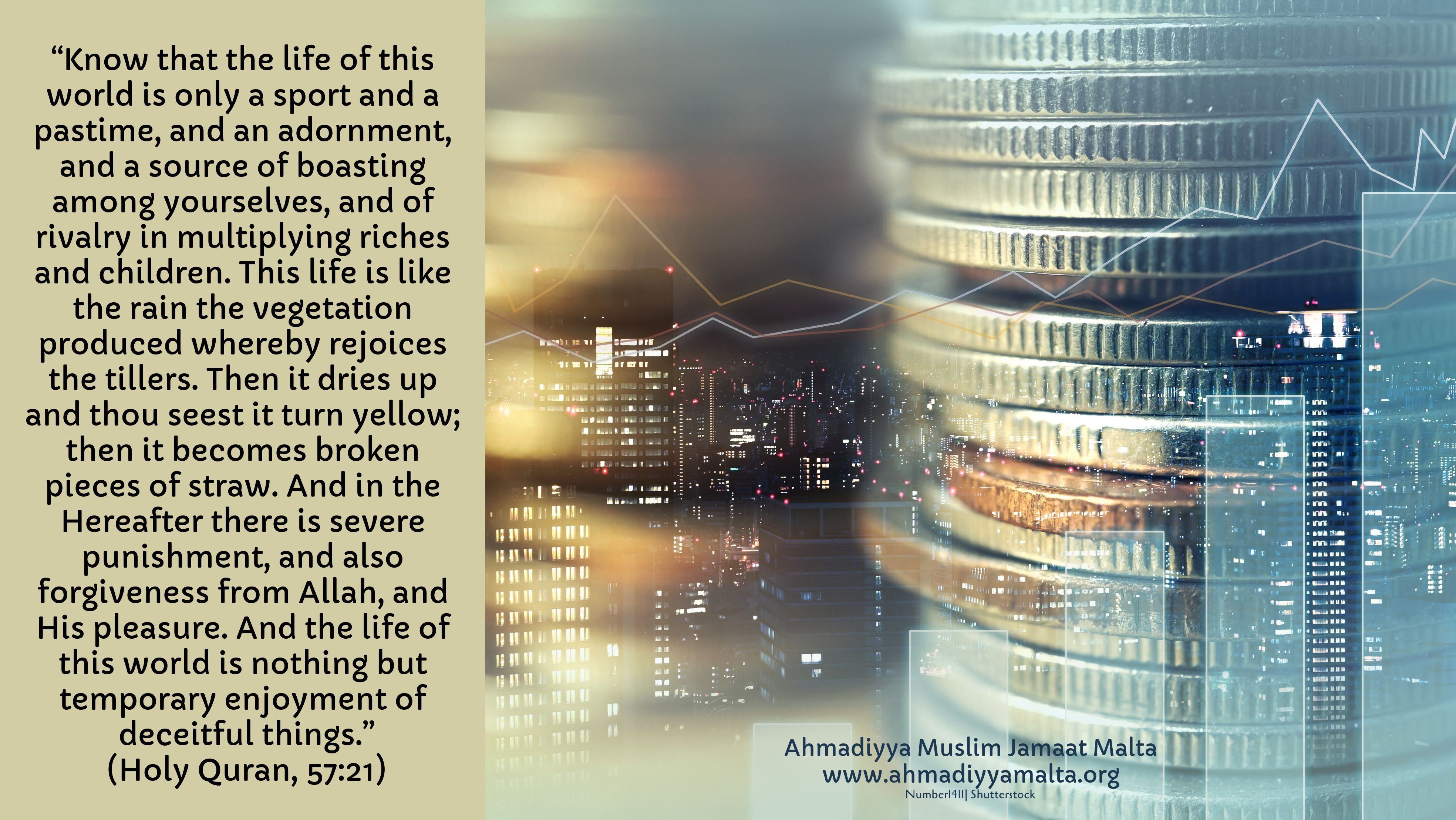 “Tassew li se nittestjawkom b’xi biża’, u b’ġuħ, u b’nuqqas ta’ ġid, ħajjiet u frott. Agħti l-bxara t-tajba lil dawk li huma sodi u jistabru.” (2.156)