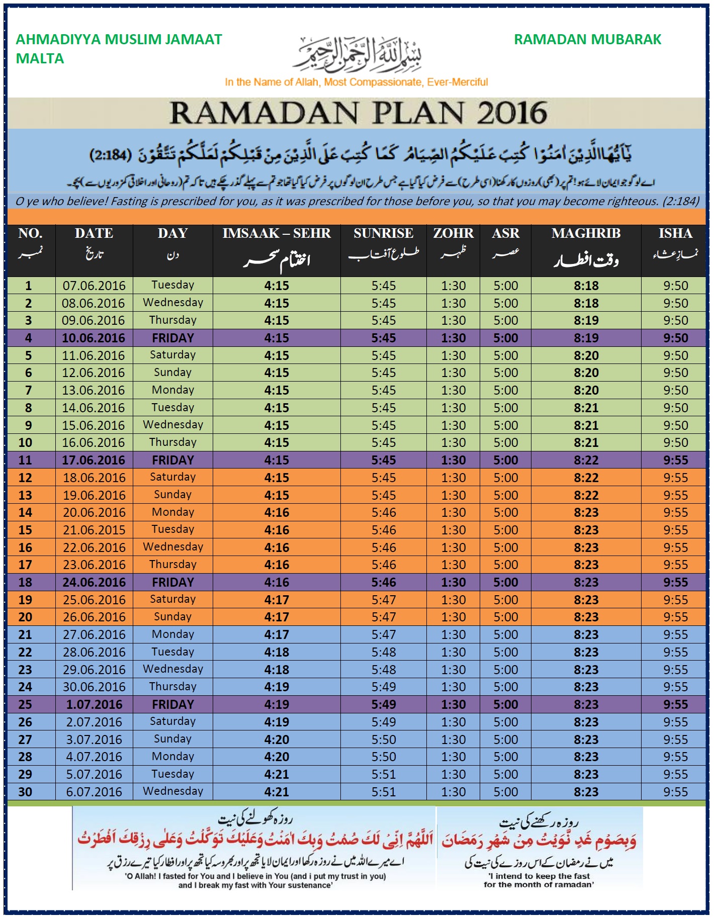 Ramadan Plan 2016 Malta