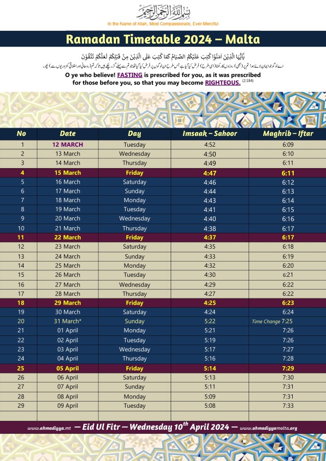 www.ahmadiyya.mt amjmalta@gmail.com – M:79 655 255 Love For All, Hatred For None